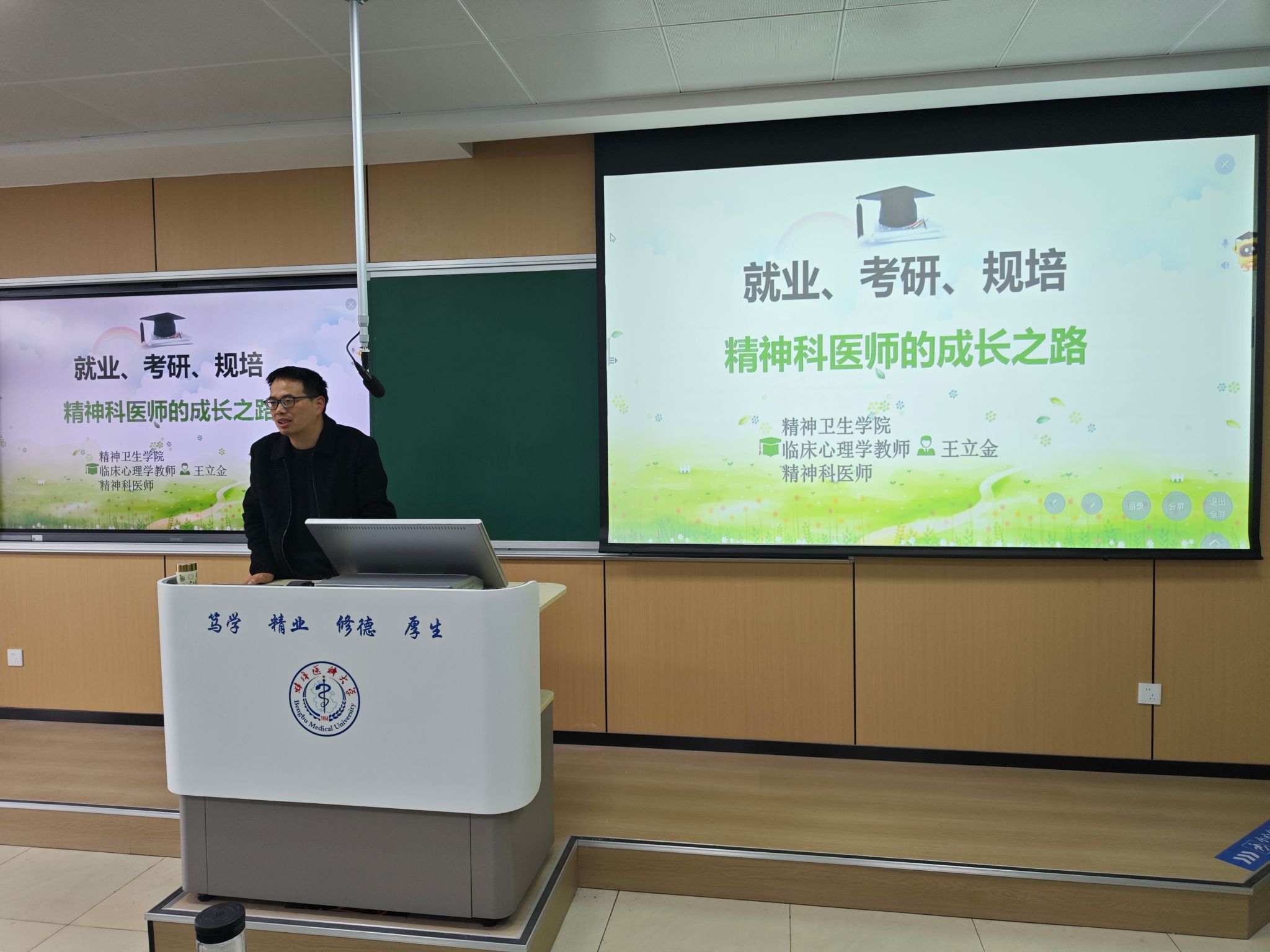 此次专题讲座的顺利举办,不仅清晰解读了考研、就业、规培的核心要点,更帮助同学们树立了正确的就业观,强化了生涯规划意识,为2022级精神医学专业学生后续的学习、实习及职业发展奠定了坚实基础。参与讲座的同学们纷纷表示,将把讲座所学转化到实际学习生活中,合理规划未来发展,珍惜专业学习机会,努力在精神医学领域深耕细作,实现自身价值。